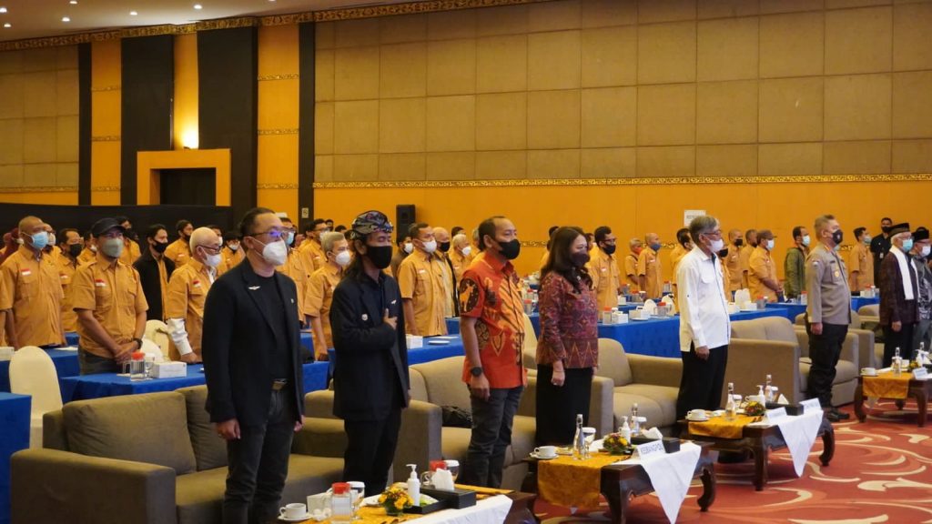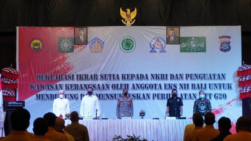 Selasa, 9 Agustus 2022. bertempat di Aston Grand Ballroom Hotel Aston Denpasar & Convention Center telah dilaksanakan kegiatan Deklarasi Ikrar Sumpah Setia kepada NKRI dan Penguatan Wawasan Kebangsaan yang diselenggarakan oleh Polda Bali dalam rangka mendukung dan mensukseskan perhelatan KTT G-20. Kepala Badan Kesatuan Bangsa dan Politik Provinsi Bali dalam hal ini diwakili oleh Kepala Bidang Kewaspadaan Nasional dan Penanganan Konflik Daerah Ni Nyoman Cahayawati,SE.,M.Si. dalam sambutannya Kapolda Bali yang dibacakan Waka Polda Bali menyampaikan bahwa Pancasila sebagai ideologi negara wajib diimplementasikan dan dilestarikan oleh seluruh komponen masyarakat indonesia. Sebagai pedoman hidup bangsa, Pancasila sangat penting ditanamkan dalam setiap sendi kehidupan, mengingat saat ini indonesia sedang menghadapi berbagai dinamika kamtibmas yang dapat merongrong keutuhan Negara Kesatuan Republik Indonesia, baik dari dalam maupun dari luar negeri. Oleh karena itu, marilah kita junjung tinggi dan jadikan nilai-nilai luhur Pancasila sebagai benteng pertahanan dalam mengarungi lautan tantangan kehidupan untuk mewujudkan tujuan dan cita-cita kemerdekaan Bangsa Indonesia.