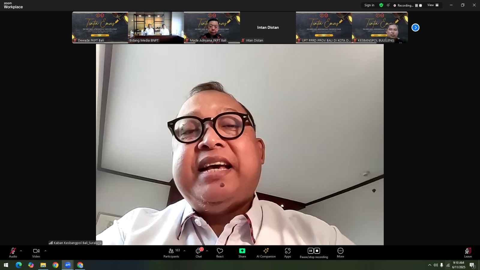 Rabu, 11 Juni 2025. Kepala Badan Kesatuan Bangsa dan Politik (Kaban Kesbangpol) Provinsi Bali, Gede Suralaga membuka kegiatan Tulisan Cinta Menyongsong Indonesia Emas (TINTA EMAS) “Goresan Cinta untuk Memperkuat Ketahanan Nasional” Dalam Pencegahan Radikalisme dan Terorisme melalui Forum Koordinasi Pencegahan Terorisme (FKPT) Bali bekerjasama dengan Deputi Bidang Pencegahan, Perlindungan dan Deradikalisasi Badan Nasional Penanggulanangan Terorisme (BNPT) RI.