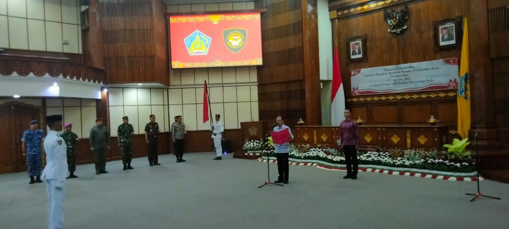 Senin, 15 Agustus 2022, bertempat di Gedung Wiswa Sabha Kantor Gubernur Bali, Kepala Badan Kesatuan Bangsa dan Politik Provinsi Bali dalam hal ini diwakili oleh Kepala Bidang Kewaspadaan Nasional dan Penanganan Konflik Daerah, Ni Nyoman Cahayawati, SE.,M.Si. menghadiri Pelaksanaan upacara pengukuhan Paskibra (Pasukan Pengibar Bendera Pusaka) Provinsi Bali Tahun 2022. Bertindak sebagai Inspektur upacara adalah Gubernur Bali. Upacara Pengukuhan ini juga turut dihadiri Kapolda Bali; Kepala Kejaksaan Tinggi Bali; Danrem 163/WSA; Kepala BIN Daerah Bali; Danlanal Denpasar; Danlanud Ngurah Rai; Kasi Intel Kasrem 163/Wirasatya; Pabung Kodim 1611/Badung. Pengukuhan ini bertujuan untuk meresmikan keanggotaan (Paskibra) pasukan pengibar bendera pusaka yang tadinya sebagai calon pasukan pengibar bendera pusaka menjadi pasukan pengibar bendera pusaka Provinsi Bali Tahun 2022.