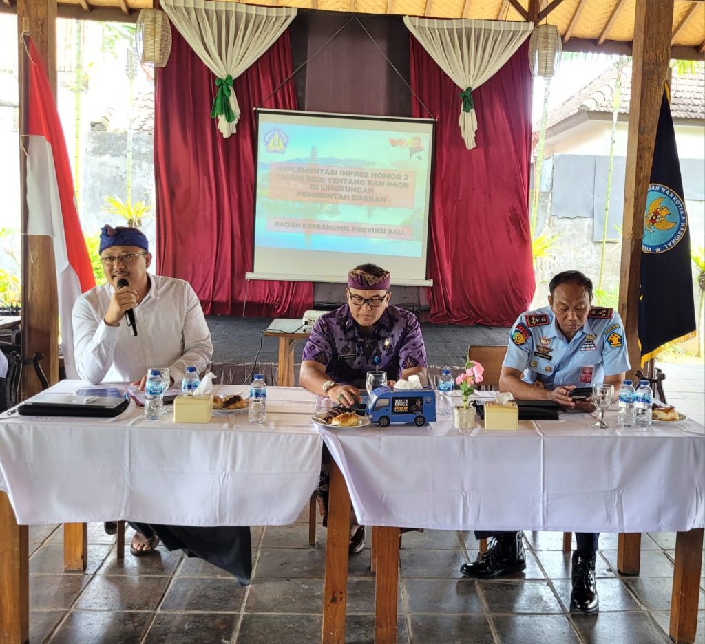Kamis, 23 Pebruari 2023, Kepala Badan Kesatuan Bangsa dan Politik (Kesbangpol) Provinsi Bali, Ngurah Wiryanata diundang sebagai Narasumber pada kegiatan Rapat Kerja Program Pemberdayaan Masyarakat Anti Narkoba di lnstansi Pemerintah yang dilaksanakan oleh Badan Narkotika Nasional (BNN) Provinsi Bali bertempat di Warung Mina Padangsambian. Dalam paparannya, Kaban Kesbangpol Bali menyampaikan Implementasi Instruksi Presiden No.2 Tahun 2020 tentang RAN P4GN di Lingkungan Pemerintah Daerah dengan melaksanakan sosialisasi P4GN serta kerjasama antara Badan Kesbangpol dan BNNP menyasar Organisasi Kemasyarakatan, FKUB dan penggiat Anti Narkoba.