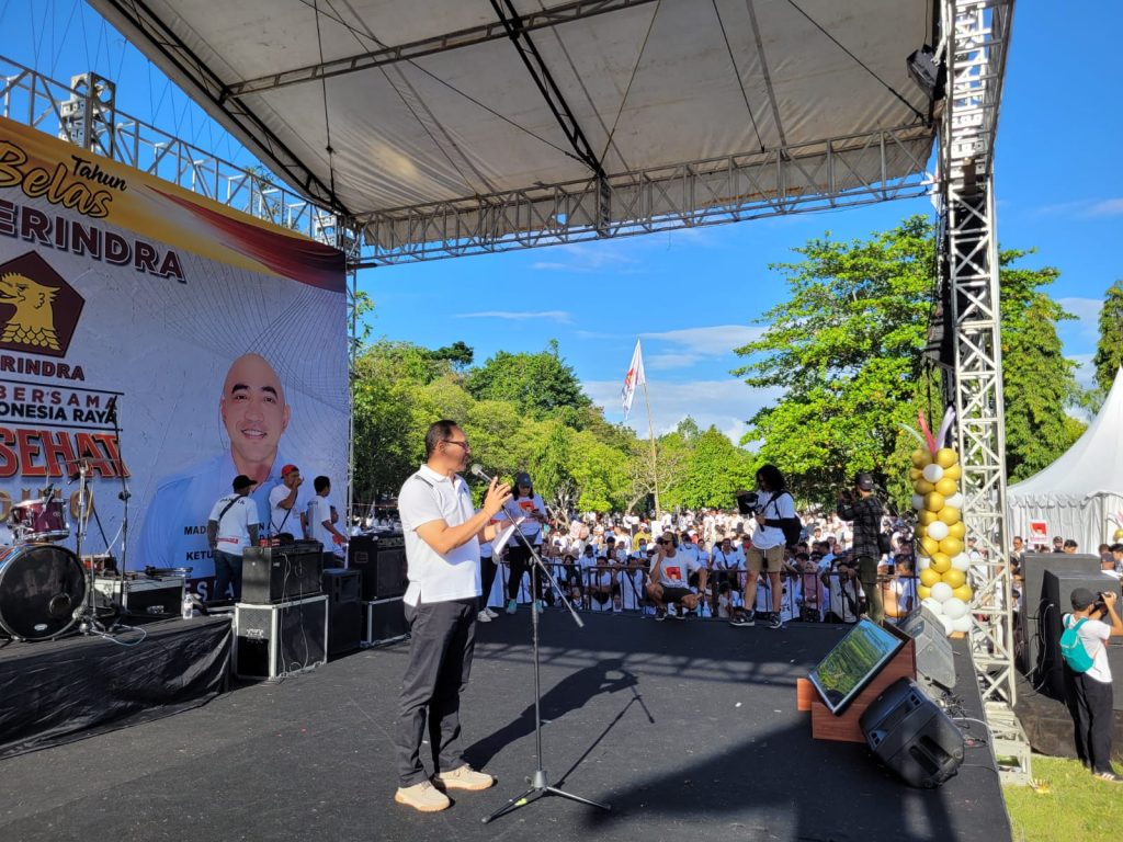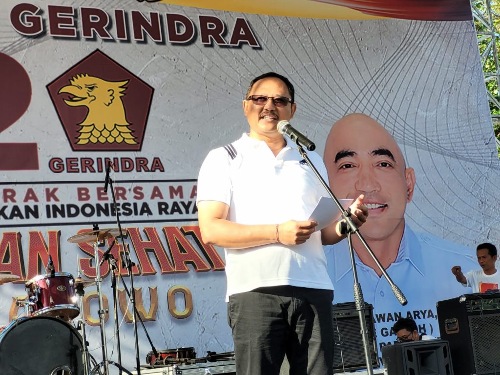 minggu pagi (12/3) Kepala Badan Kesatuan Bangsa dan Politik (Kesbangpol) Provinsi Bali, Ngurah Wiryanata membacakan Sambutan Gubernur Bali pada acara Jalan Sehat dalam rangka Perayaan Puncak HUT ke 15 Partai Gerindra di Lapangan Niti Mandala Renon. Dalam sambutannya Gubernur Bali mengucapkan selamat ulang tahun yang ke-15 tahun kepada Partai Gerindra, dan berharap agar kader-kader Partai Gerindra senantiasa selalu berkomitmen menjaga persatuan dan kesatuan serta mencurahkan segala perhatiannya, sehingga segala program kegitan yang dibuat dapat bermanfaat bagi anggota pada khususnya dan pembangunan Nasional pada umumnya, serta pembangunan di daerah Bali yang kita cintai. Sejalan dengan Visi Pembangunan Bali “NANGUN SAT KERTHI LOKA BALI” melalui pola pembangunan semesta berencana, yang mengandung makna menjaga kesucian dan keharmonisan alam Bali beserta isinya. Untuk mewujudkan kehidupan krama Bali yang sejahtera dan bahagia, sekala-niskala menuju kehidupan Krama dan Gumi Bali sesuai dengan prinsip Tri Sakti Bung Karno “Berdaulat secara politik, berdikari secara ekonomi, dan berkepribadian dalam kebudayaan melalui pembangunan secara terpola, menyeluruh, terencana, terarah dan terintegrasi dalam bingkai Negara Kesatuan Republik Indonesia berdasarkan nilai-nilai Pancasila 1 Juni 1945”. Acara Jalan Sehat yang dihadiri Ketua DPP, Ketua DPD, simpatisan dan masyarakat umum ini dilepas oleh Wakil Gubernur Bali, Cok Ace.