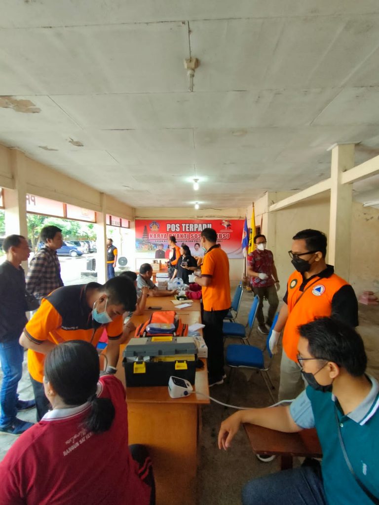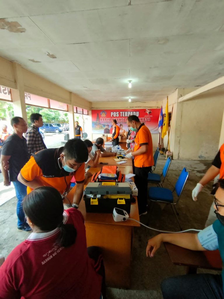 Sebelumnya sejak pagi telah dilaksanakan kegiatan palayanan pemeriksaan kesehatan gratis bermitra-kolaborasi bersama Tim Dokter-Perawat ESR BPBD Provinsi Bali, Tim dokter & perawat Klinik Parwata dan Bali Rescue. Pegawai di lingkungan Kesbangpol dan masyarakat umum lainnya dengan antusias melakukan cek tensi tubuh, cek gula darah dan pemberian vitamin.