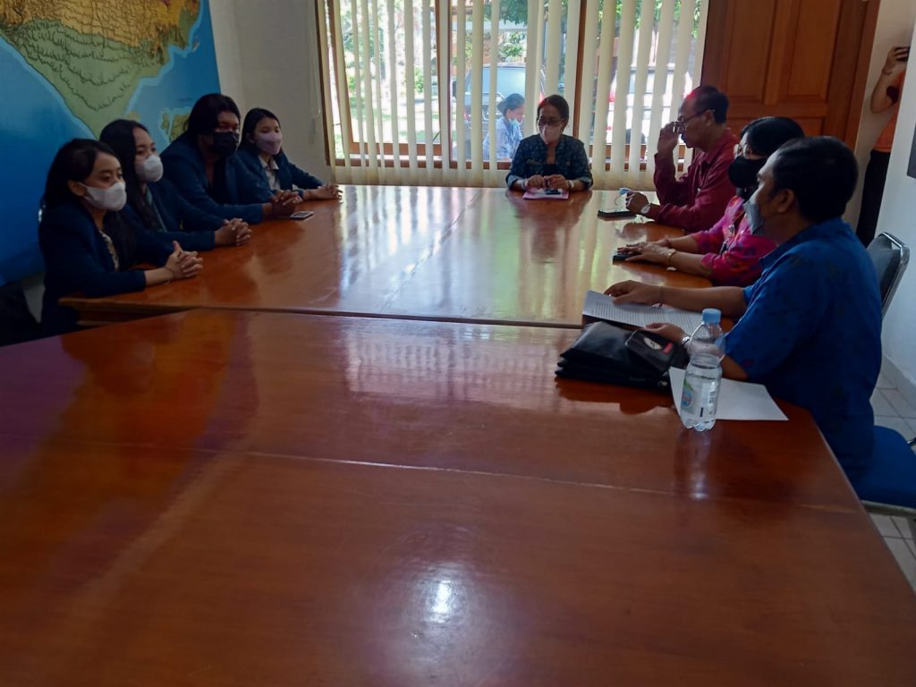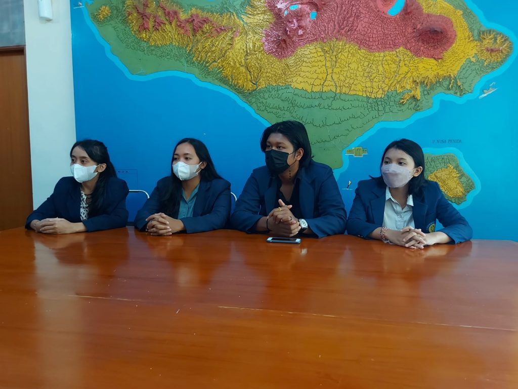 Selasa, 26 April 2022. bertempat di Badan Kesatuan Bangsa dan Politik Provinsi Bali, Kepala Badan Kesbangpol dalam hal ini diwakili Kepala Bidang Ketahanan Ekonomi, Sosial Budaya, Agama dan Organisasi Kemasyarakatan, Dra. Gusti Nyoman Ramiasih,MH. yang didampingi Analis Kebijakan Ahli Muda Sub Koordinator Unit Substansi Organisasi Kemasyarakatan, Drs. I Gusti Agung Komang Kusuma Astawa beserta Analis Kebijakan Ahli Muda Sub Koordinator Unit Substansi Fasilitasi Kelembagaan Pemerintahan, Perwakilan dan Partai Politik, I Made Sugiantara, S.IP. menerima Audensi Panitia Pelaksana Kegiatan Kompetisi Peradilan Semu Tingkat Nasional Piala Tjokorda Raka Dherana VII Tahun 2022 yang diselenggarakan oleh Udayana Moot Court Community Fakultas Hukum Universitas Udayana. sekaligus menyerahkan plakat sebagai bentuk apresiasi atas bimbingan yang diberikan dalam pelaksanaan kegiatan Kompetisi Peradilan Semu Tingkat Nasional Piala Tjokorda Raka Dherana VII, kepada I Made Sugiantara, S.IP. beserta Agus Santoso, S.Sos.