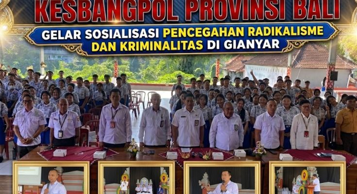Gianyar – Dalam upaya memperkuat ketahanan generasi muda terhadap ancaman radikalisme dan kriminalitas, Badan Kesatuan Bangsa dan Politik (Kesbangpol) Provinsi Bali melaksanakan kegiatan Road Show Sosialisasi Pencegahan Paparan Radikalisme dan Kriminalitas pada Rabu, 22 April 2026, bertempat di Aula SMA Negeri 1 Gianyar.