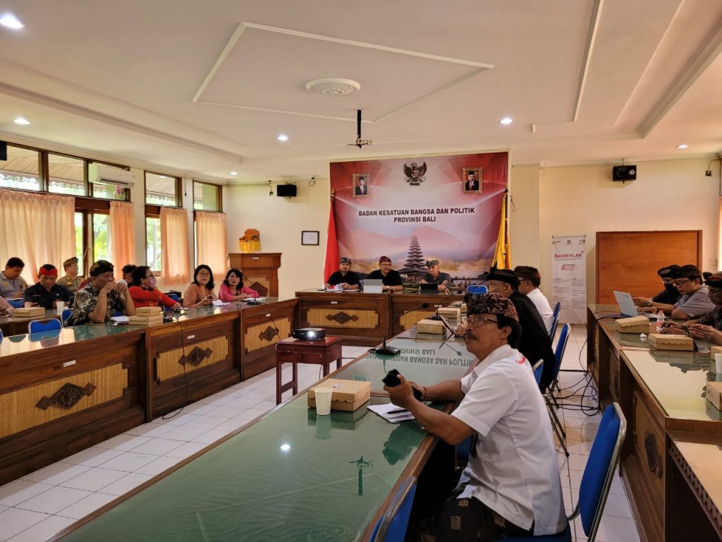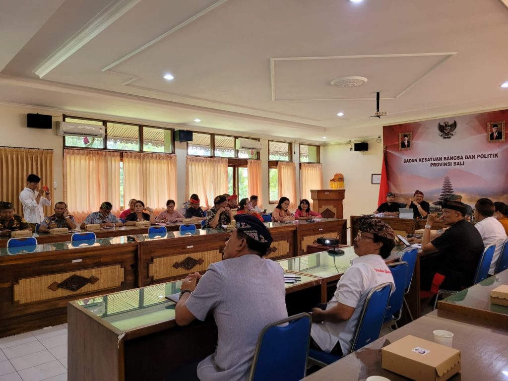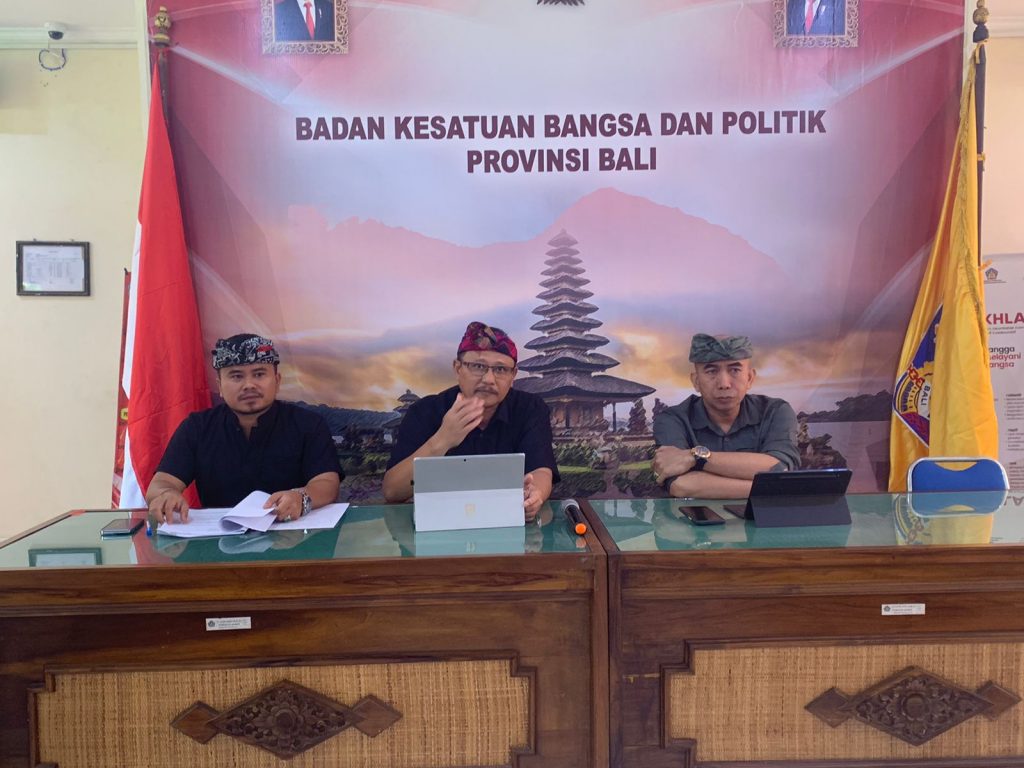 Kamis, 2 Maret 2023. Badan Kesatuan Bangsa dan Politik (Kesbangpol) Provinsi Bali Laksanakan Rapat Persiapan Pelaksanaan Bulan Bung Karno V (BBK V) di Provinsi Bali Tahun 2023 yang dipimpin oleh Kaban Kesbangpol Provinsi Bali, Ngurah Wiryanata dan didampingi Kepala Biro Umum dan Protokol Setda Provinsi Bali, Wayan Budiasa dan Analis Kebijakan Ahli Muda, I Made Artanegara.