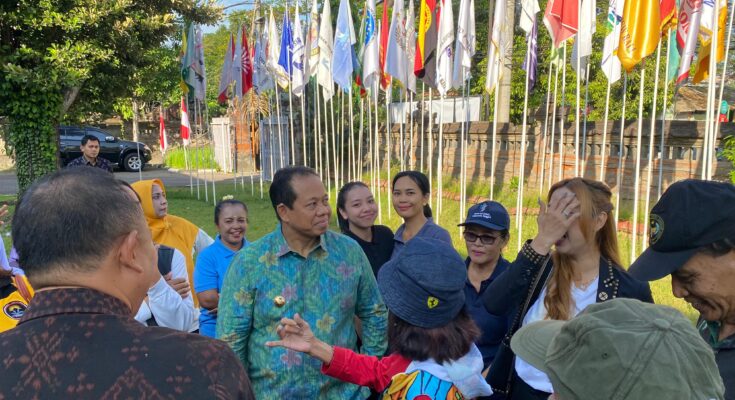 Denpasar – Pj. Gubernur Bali, S.M. Mahendra Jaya di sela kesibukannya yang padat menyempatkan hadir menyapa masyarakat dalam kegiatan Temu Wirasa dan Bhakti Sosial Ngrombo ke-38, Jumat, 28 Juni 2024 bertempat di Kantor Badan Kesatuan Bangsa dan Politik Provinsi Bali.