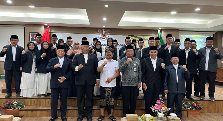 Kamis, 25 September 2025. Badan Kesatuan Bangsa dan Politik (Badan Kesbangpol) Provinsi Bali yang diwakili Kepala Bidang Politik Dalam Negeri, Made Artanegara bacakan sambutan Gubernur Bali pada Kegiatan Pelantikan Bersama Pengurus Lembaga Pengembangan Tilawatil Qur’an (LPTQ) masa bakti 2025-2029 dan Ikatan Qori-Qori’ah/Hafidz-Hafidzah (IPQAH) masa bakti 2025-2029 Provinsi Bali bertempat di Aula Kanwil Kementerian Agama Provinsi Bali.